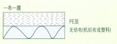 復合土工膜是在薄膜的一側(cè)或兩側(cè)貼上土工布,形成復合土工膜。其形式有一布一膜、二布一膜、兩膜一布等。